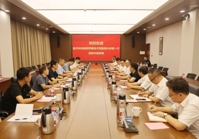 8月7日,航天科技集团质量技术部副部长余斌一行到中铝高端交流访问,进一步加强双方战略合作,拓展业务领域。