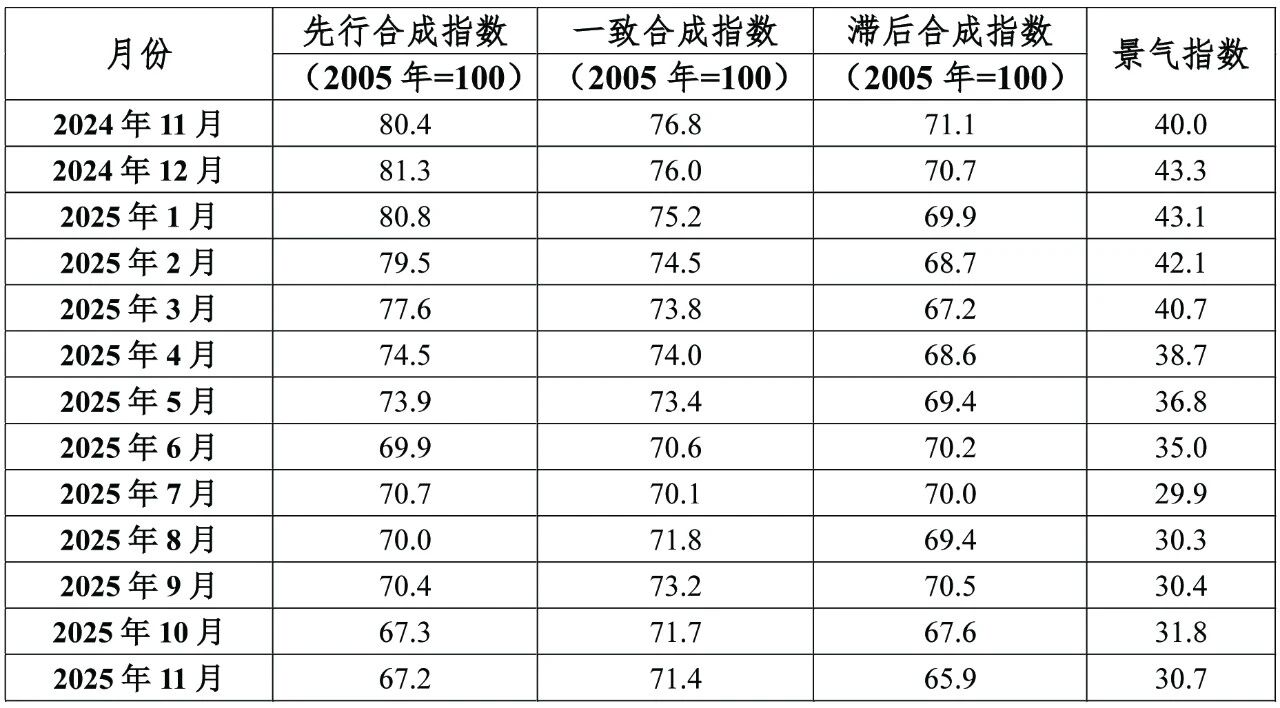 中国有色金属产业月度景气指数监测模型结果显示,2025 年11月,中国有色金属产业景气指数为30.7,较上月下降1.1个百分点;先行指数67.2,较上月下降0.1个百分点;一致指数为71.4,较上月下降0.3个百分点。