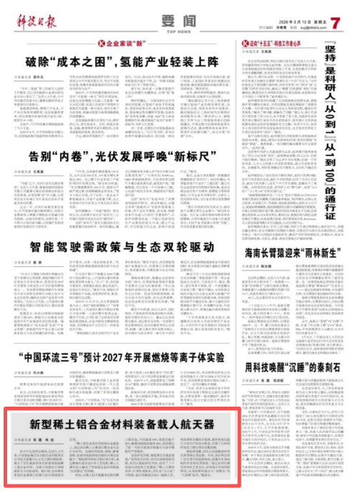 新型稀土铝合金材料装备载人航天器